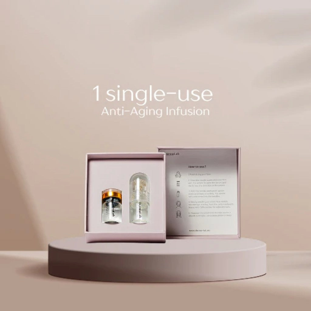 Onze Anti-Aging Micro Infusion Treatment is jouw 100% veilige, steriele en pijnloze micro needle behandeling voor thuisgebruik, ontwikkeld in samenwerking met artsen en met direct resultaat, tegen een fractie van de kost en tijd!