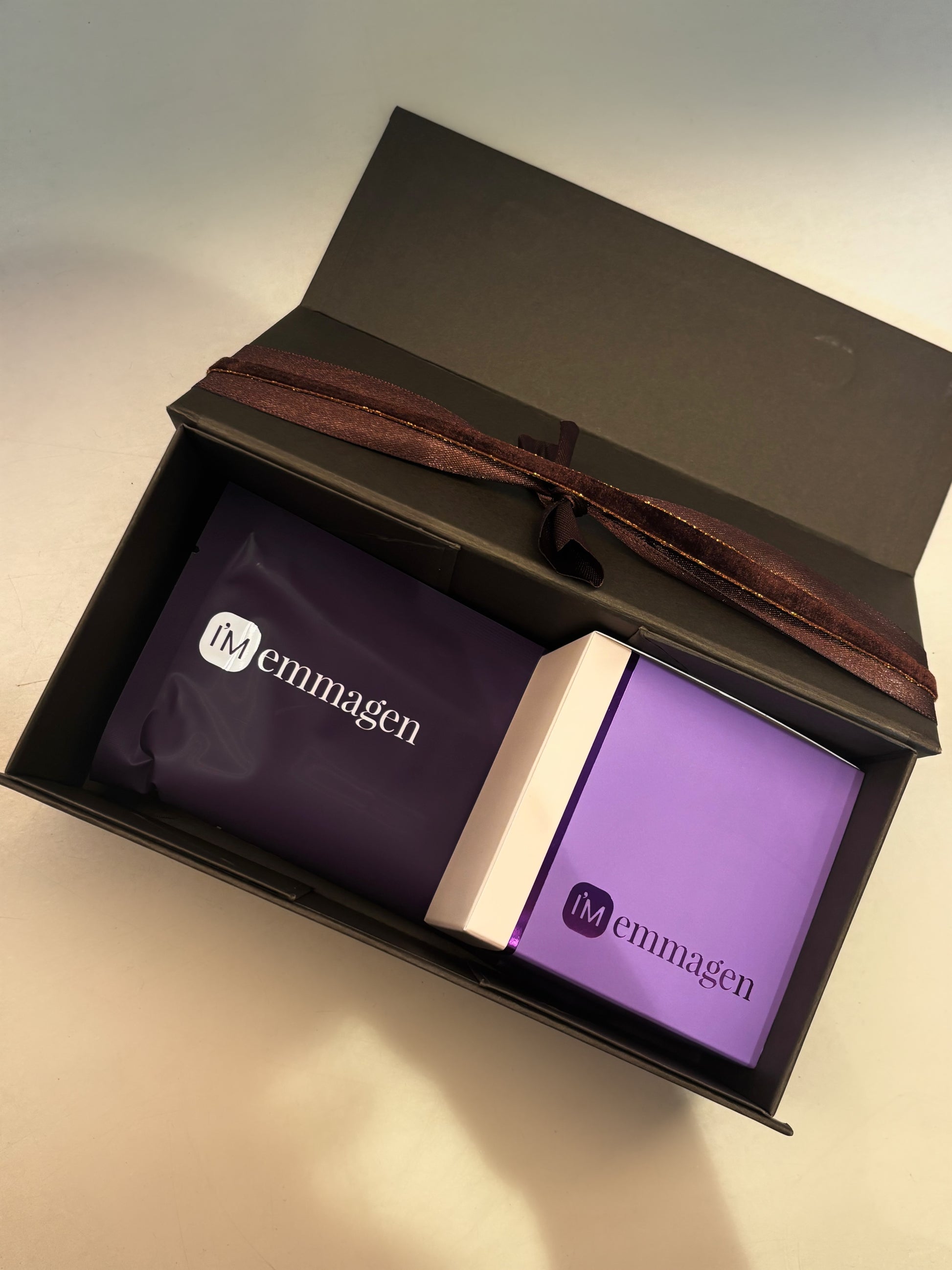 Met dit feestelijke cadeau geef je niet alleen Eye Pads van Emmagen maar ook een welverdiend rustmoment – met een gratis Age Less Mask als extra attentie.