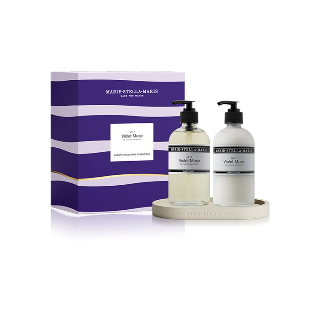 Ervaar ultieme handverzorging met onze luxe handverzorgingsset, inclusief een milde handzeep en een hydraterende handlotion. De natuurlijke formule met kokosglucoside en glycerine houdt je huid gehydrateerd. De limited edition geur No.11 Violet Muse biedt een elegante geurervaring met tonen van iris, musk en sandelhout. Inclusief design tray om de handzeep en handlotion stijlvol te presenteren.